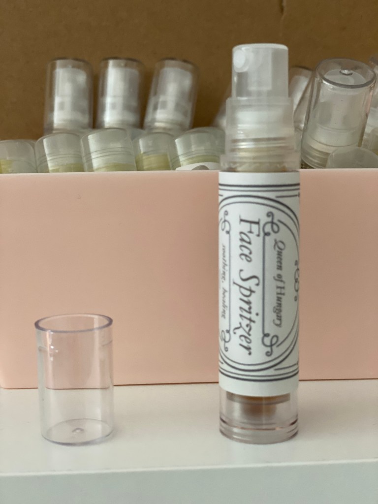 Queen of Hungary Facial Spritzer ($15) this facial spritzer is made from an ancient recipe purported to have been used by the Queen of Hungary in 1370 AD. 12 different flowers are steeped in Witch Hazel for a minimum of 2 months to produce a light and refreshing floral spray.